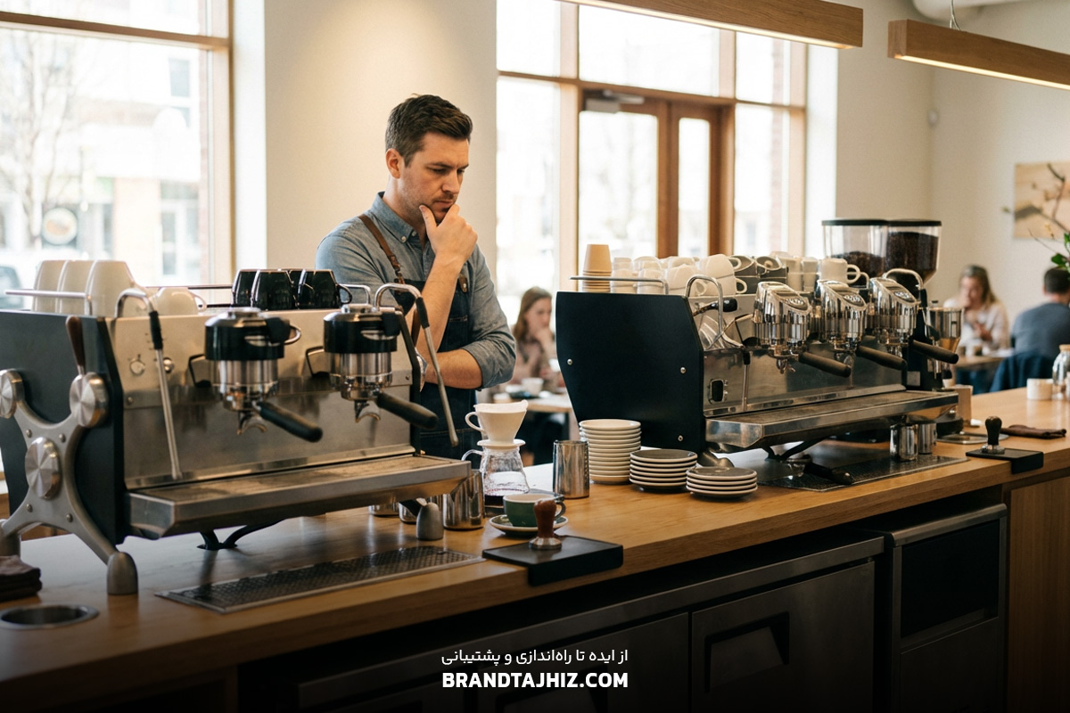 انتخاب بین اسپرسوساز ۲ گروپ و ۳ گروپ یکی از چالشهای اصلی راهاندازی کافه است. در این مقاله تخصصی از برند تجهیز، با بررسی دقیق حجم سفارشات، ظرفیت بویلر و تحلیل بازگشت سرمایه، بهترین گزینه را برای کسبوکارتان انتخاب کنید. تصور کنید صبح یک روز تعطیل است یا ساعت شلوغی عصرگاهی فرا رسیده؛ صف مشتریان جلوی صندوق طولانی شده و همه منتظر قهوههایشان هستند. در این لحظه حیاتی، صدای آسیاب قطع نمیشود و بخار نازل دستگاه لحظهای از حرکت نمیایستد. اینجاست که "قلب تپنده" کافه شما (بگذارید این اصطلاحات کلیشهای را کنار بگذاریم)، در واقع "موتور محرک درآمدزایی" شما، یعنی دستگاه اسپرسوساز، باید امتحان خود را پس بدهد. اگر دستگاهی که انتخاب کردهاید توان پاسخگویی به این حجم از فشار را نداشته باشد، نتیجه مشخص است: مشتری ناراضی، سرویس کند و در نهایت افت کیفیت قهوه به دلیل نوسان دمای آب. یکی از رایجترین سوالاتی که ما در جلسات مشاوره برند تجهیز با سرمایهگذاران و باریستاها با آن مواجه میشویم، دقیقا همین دو راهی است: اسپرسوساز ۲ گروپ یا ۳ گروپ؟ آیا پرداخت هزینه بیشتر برای یک گروپ اضافه، توجیه اقتصادی دارد؟ یا اینکه یک دستگاه دو گروپ هم میتواند نیازهای یک کافه شلوغ را برطرف کند؟ پاسخ به این سوال فقط یک عدد نیست؛ بلکه ترکیبی از ریاضیات، پیشبینی فروش و درک فنی از عملکرد بویلرهاست. در این مقاله تخصصی، قصد داریم فراتر از کاتالوگهای تبلیغاتی برویم و با نگاهی کاملا فنی و عملیاتی، این دو غول تجهیزات کافی شاپ را مقایسه کنیم تا شما بتوانید بودجه خود را دقیقاً در جایی که لازم است، هزینه کنید. معیار واقعی سنجش: گروپهد چیست و چرا تعداد آن مهم است؟ قبل از اینکه وارد بحث مقایسه شویم، باید درک مشترکی از مفهوم "گروپ" داشته باشیم. در دنیای حرفهای تجهیزات کافی شاپ، گروپهد (Group Head) همان بخشی است که پرتافیلتر (دسته گروپ) در آن قفل میشود و آب داغ با فشار ۹ بار (یا متغیر در دستگاههای پیشرفته) از روی سابهی قهوه عبور میکند. اما تعداد گروپها فقط به معنی تعداد خروجی قهوه نیست؛ بلکه نمایانگر "ظرفیت حرارتی" و "حجم بویلر" دستگاه است. وقتی صحبت از انتخاب بین ۲ یا ۳ گروپ میشود، بسیاری از افراد فقط به این فکر میکنند که "من میتوانم همزمان ۴ فنجان یا ۶ فنجان قهوه بگیرم". اما نکته فنی و ظریف ماجرا اینجاست: افزایش تعداد گروپ معمولاً به معنای افزایش حجم بویلر اصلی (در دستگاههای تک بویلر یا هیت اکسچنجر) یا افزایش تعداد و حجم بویلرهای مستقل (در دستگاههای مولتی بویلر) است. این یعنی پایداری دمایی بیشتر. وقتی شما پشت سر هم شات میگیرید و همزمان از نازل بخار استفاده میکنید، دستگاهی که بویلر بزرگتری دارد، دیرتر دچار افت فشار و دما میشود. بنابراین، بحث فقط سر تعداد خروجی نیست، بحث سر "کیفیت ثبات عصارهگیری" در فشار کاری بالاست. اسپرسوساز ۲ گروپ: قهرمان انعطافپذیر اکثر کافهها بیایید رو راست باشیم؛ برای حدود ۷۰ تا ۸۰ درصد کافههای استاندارد شهری، یک اسپرسوساز ۲ گروپ گزینهای ایدهآل و کافی است. این دستگاهها تعادل بسیار خوبی بین قیمت، کارایی و فضای اشغال شده برقرار میکنند. ۱. ظرفیت خروجی و مدیریت سفارشات یک باریستای حرفهای با یک دستگاه دو گروپ میتواند به راحتی تا حدود ۶۰ تا ۸۰ شات اسپرسو در ساعت را مدیریت کند. البته اگر نوشیدنیها ترکیبی باشند (مثل لته و کاپوچینو)، این عدد به مهارت باریستا در استیم کردن (بخار دادن) شیر بستگی دارد. اگر پیشبینی میکنید که مصرف قهوه روزانه شما بین ۳ تا ۱۰ کیلوگرم در هفته است، احتمالا نیازی به هزینه کردن برای دستگاه بزرگتر ندارید. دستگاه ۲ گروپ به شما اجازه میدهد دو باریستا به صورت فشرده کنار هم کار کنند، اما فضای کاری کمی تنگ خواهد بود. ۲. مدیریت فضا در کانتر بار یکی از چالشهای اصلی در طراحی تجهیزات کافه و رستوران، محدودیت فضای کانتر است. دستگاههای ۲ گروپ معمولاً عرضی بین ۷۰ تا ۸۰ سانتیمتر دارند. این یعنی شما فضای بیشتری برای قرار دادن دو عدد آسیاب (
